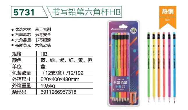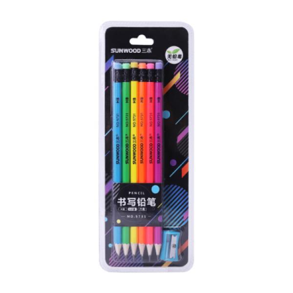 三木(SUNWOOD) 5731 12支HB六角彩杆铅笔带卷笔刀